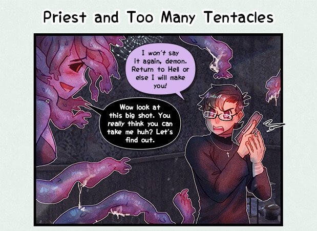 Also an interesting phenomena, for the longest time I HATED guns and wanted nothing to do with them in my stories, I don’t really know why I wanted to give Priest a gun in the first place cause I hated them so much. I think it was a silly passing thought like “haha he exorcises demons with guns he takes from hammerspace” and I liked it so much that it became a real thing. Anyway, after making Priest I have become a gun-lover hahaha.
